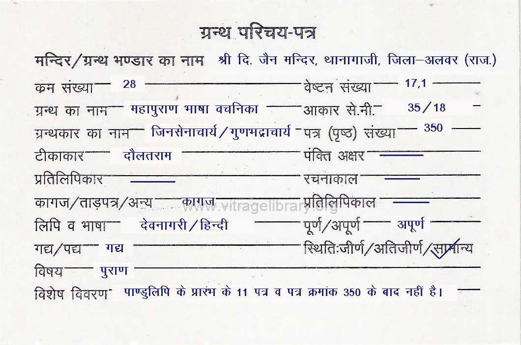 | Granth | : | Padam Puran Bhasha Vachanika |