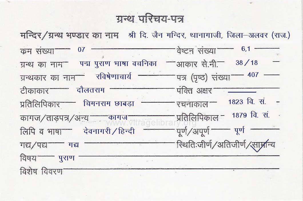 | Granth | : | Padma Puran Bhasha Vachanika |