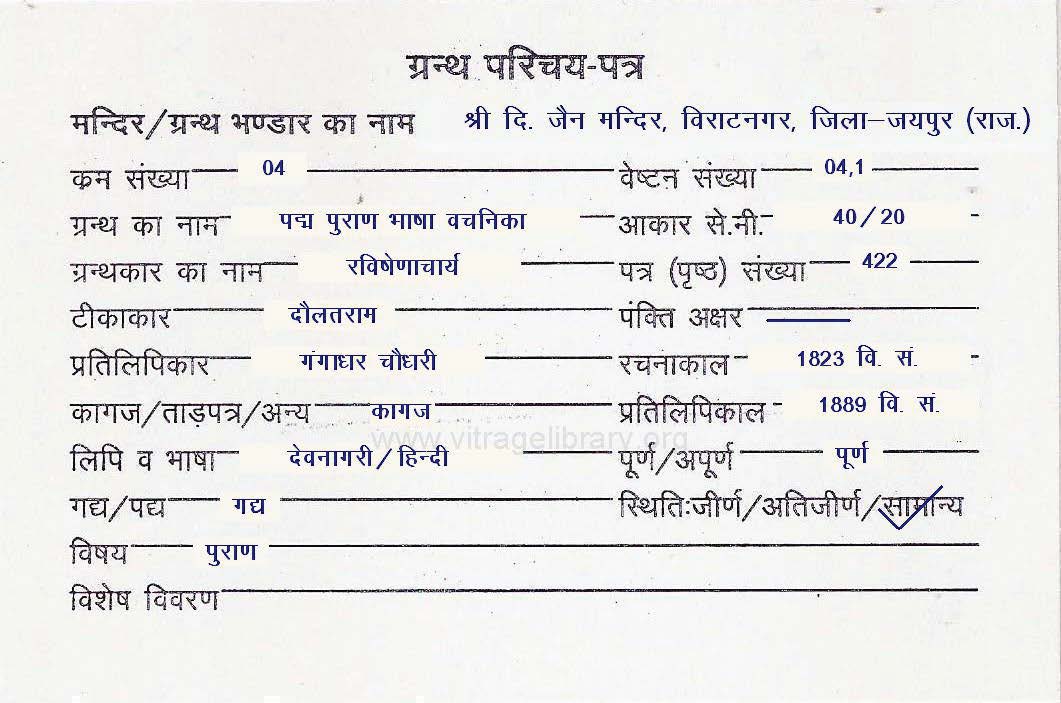 | Granth | : | Padma Puran Bhasha Vachanika |