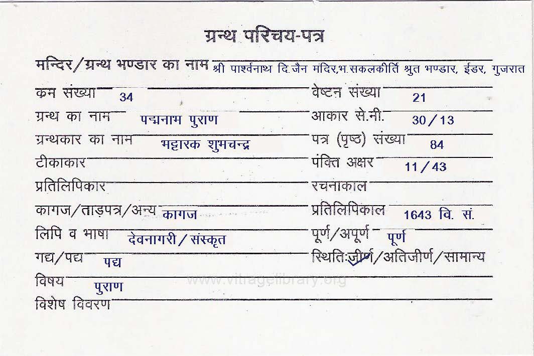 | Granth | : | Padmanaabh Puran |