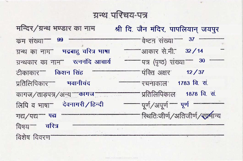 | Source | : | Shree Parshwanath Digambar Jain Mandir, Bhattarak Sakalkirti Shrut Bhandar, Idar (Guj.) |