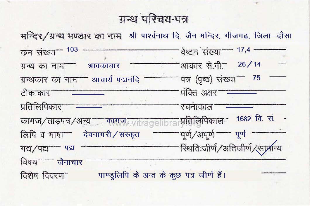 | Granth | : | Padmanandi Panchvinshati |