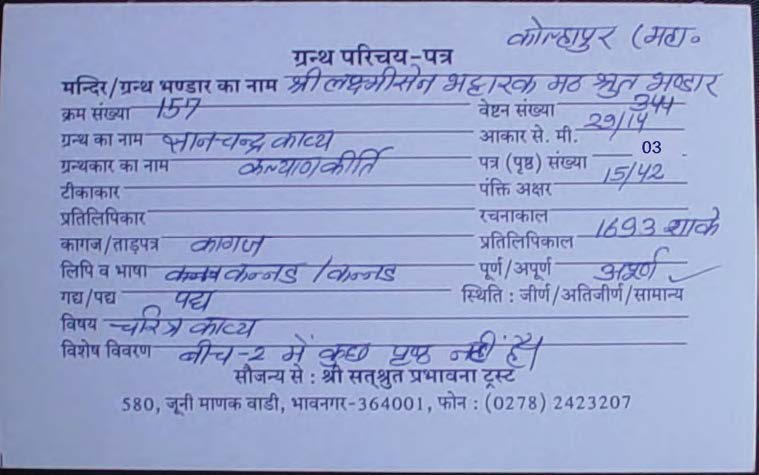 | Source | : | Shree Digambar Jain Saraswati Bhandar Naya Mandir, Hathras (U.P.) |