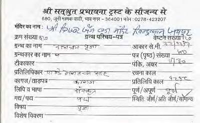 | Manuscripted By | : | Sh. Kishanlal Papadival |