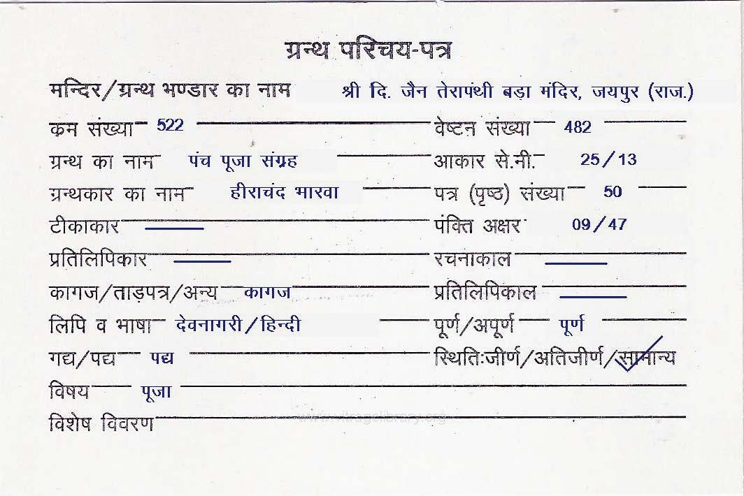 | Granth | : | Panch Pooja Sangrah |