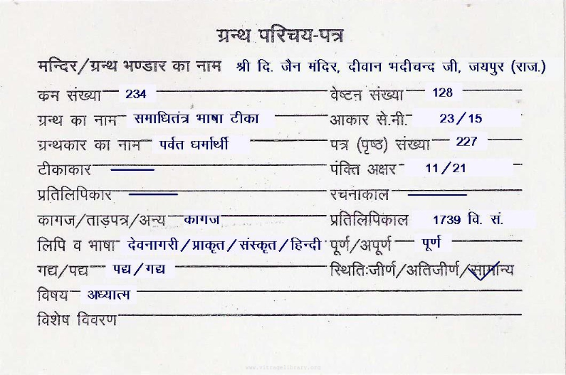 | Manuscripted By | : | Pandit Sitaram Shastri |