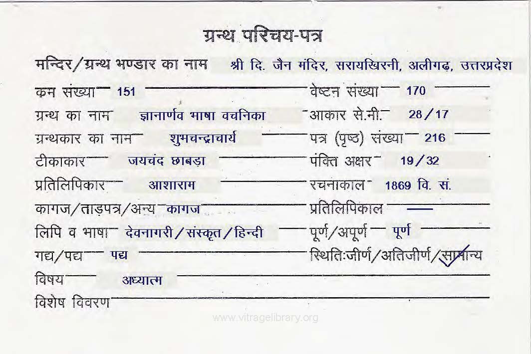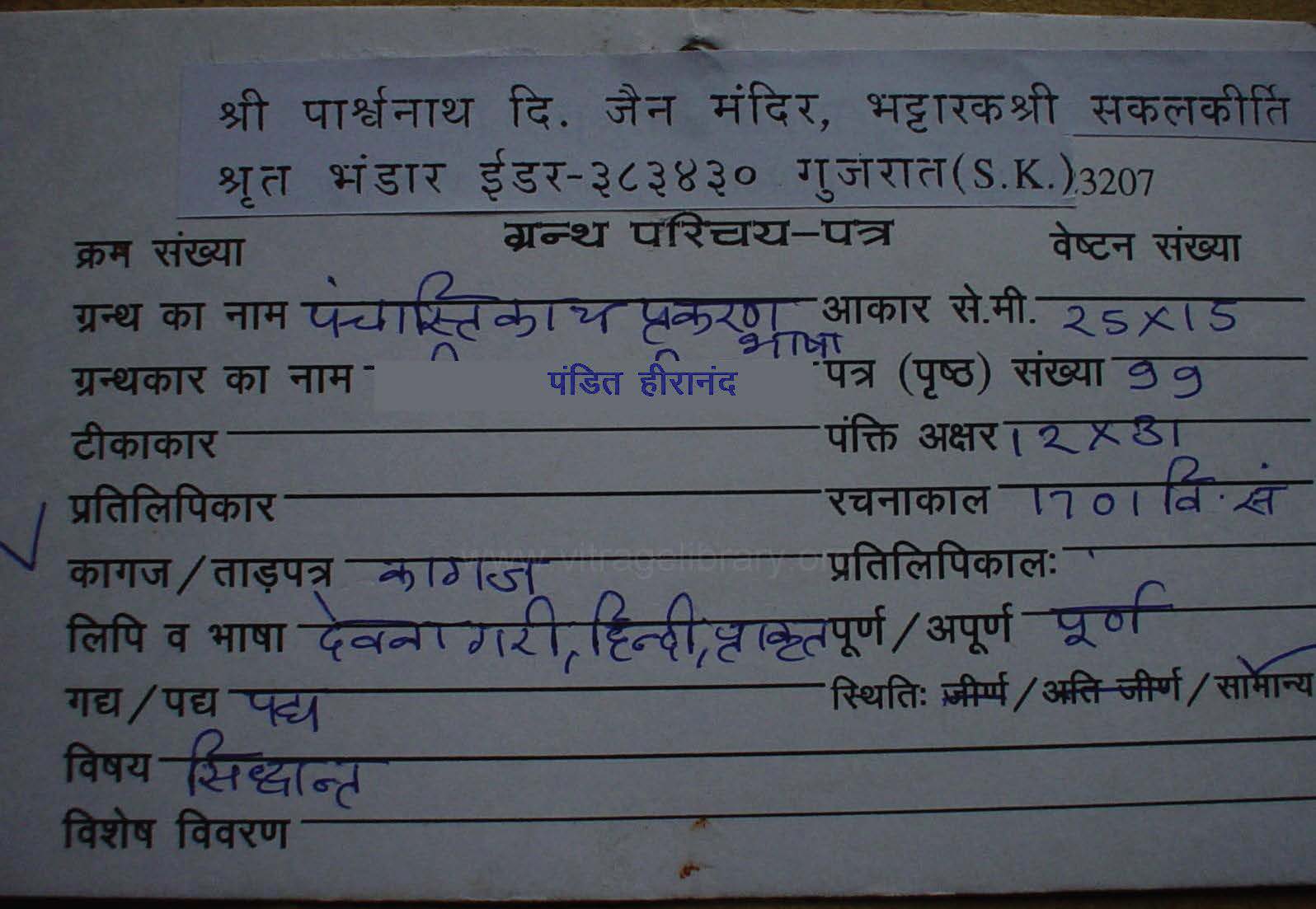 | Source | : | Shree Parshwanath Digambar Jain Mandir, Bhattarak Sakalkirti Shrut Bhandar, Idar (Guj.) |