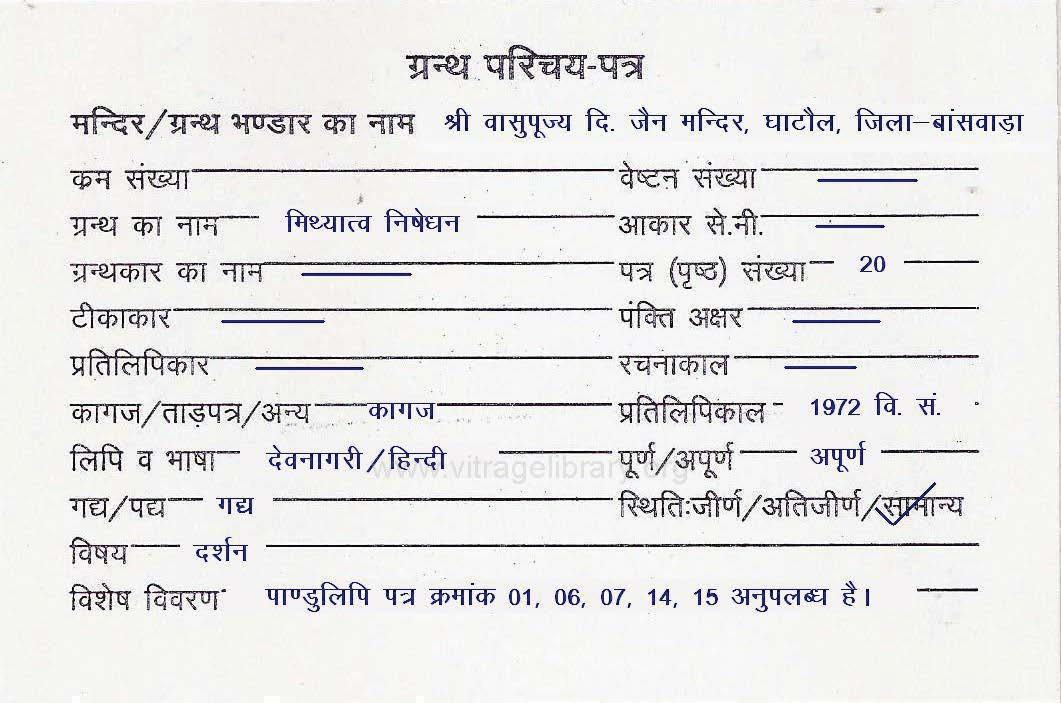 | Source | : | Shree Parshwanath Digambar Jain Mandir, Bhattarak Sakalkirti Shrut Bhandar, Idar (Guj.) |
