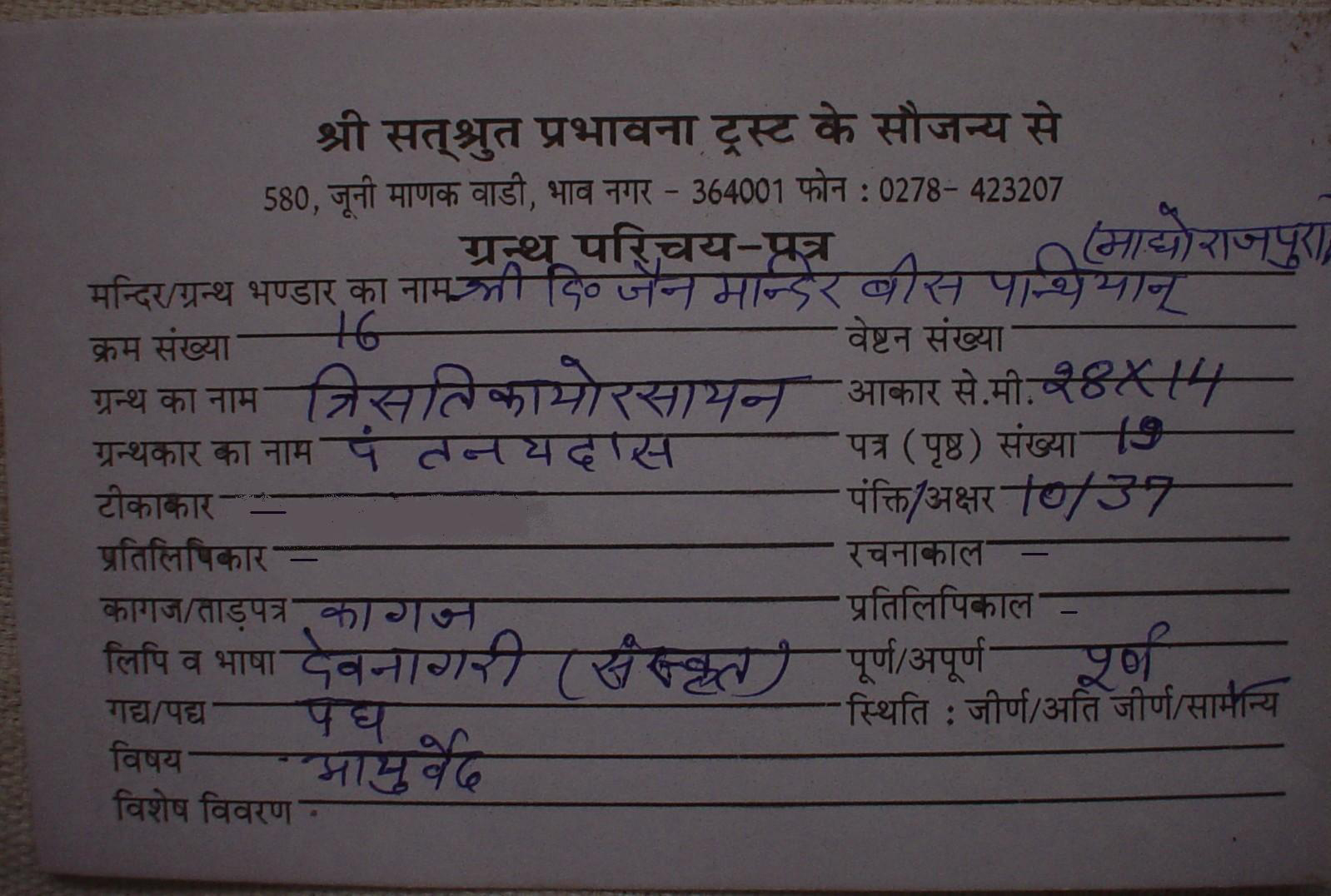 | Comments | : | In this book, Dharmarath, Iryapath Rath etc. are given in table form. |