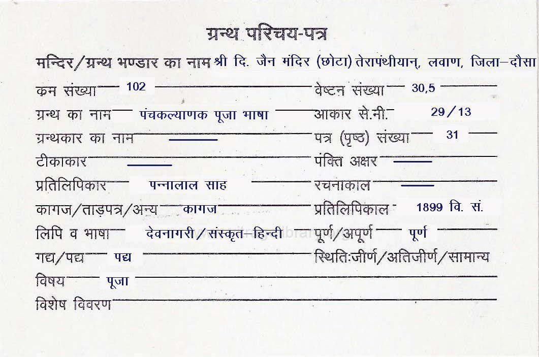 | Granth | : | Panchkalyanak Puja Bhasha |