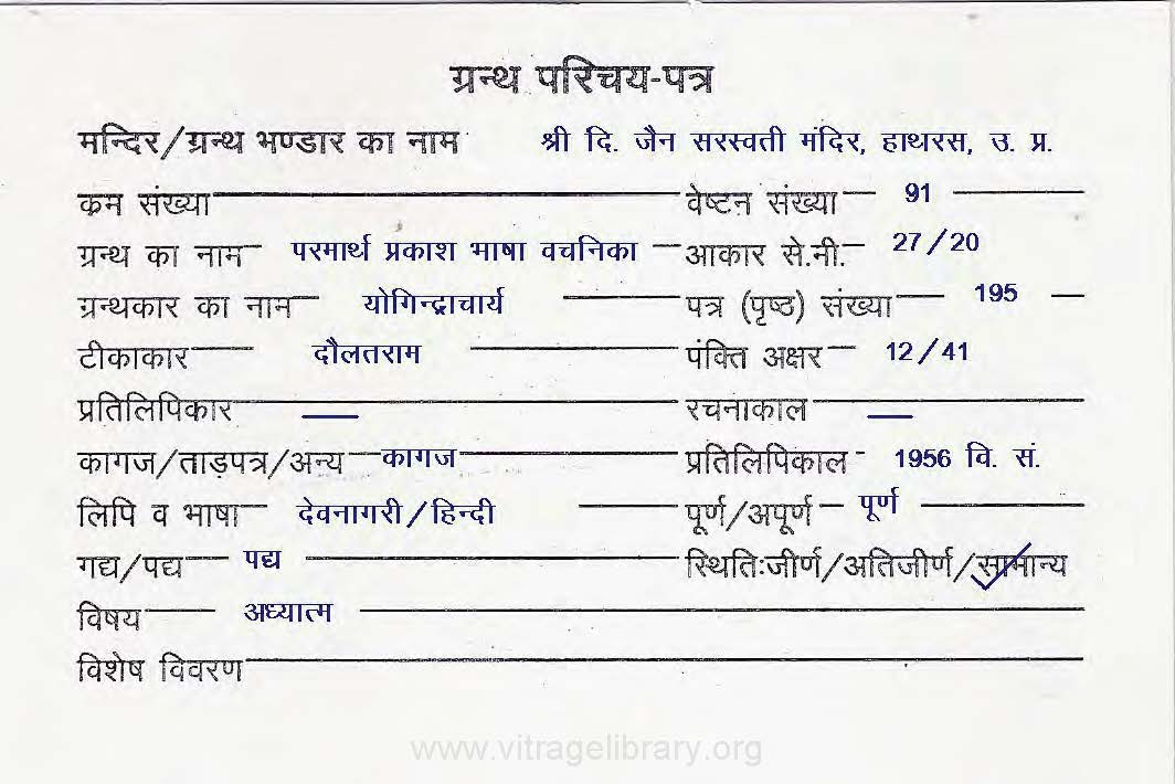 | Granth | : | Parmarth Prakash Bhasha Vachanika |