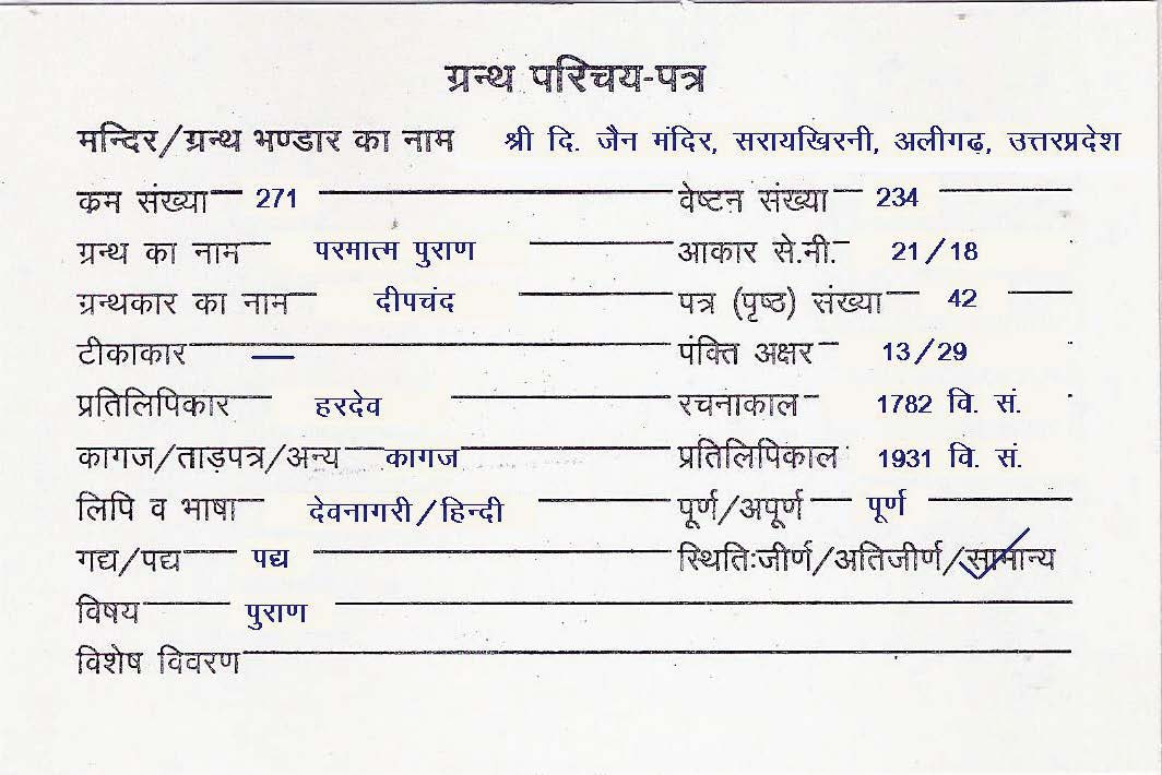 | Granth | : | Parmatma Puran |