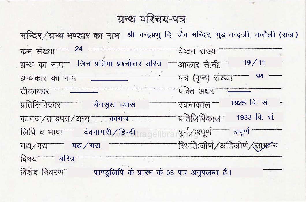 | Manuscript Year | : | 1880 Vik. S. |