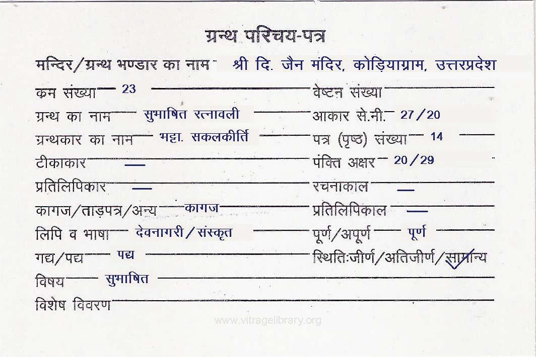 | Manuscript Year | : | 1784 Vik. S. |