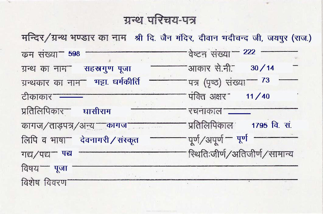 | Source | : | Shree Digambar Jain Saraswati Bhandar Naya Mandir, Hathras (U.P.) |
