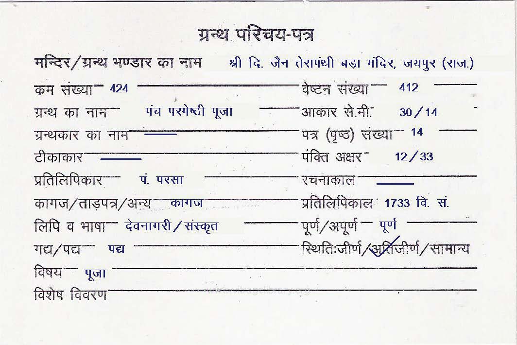 | Source | : | Shree Digambar Jain Mandir, Deewan Bhadichand Ji, Jaipur (Raj.) |