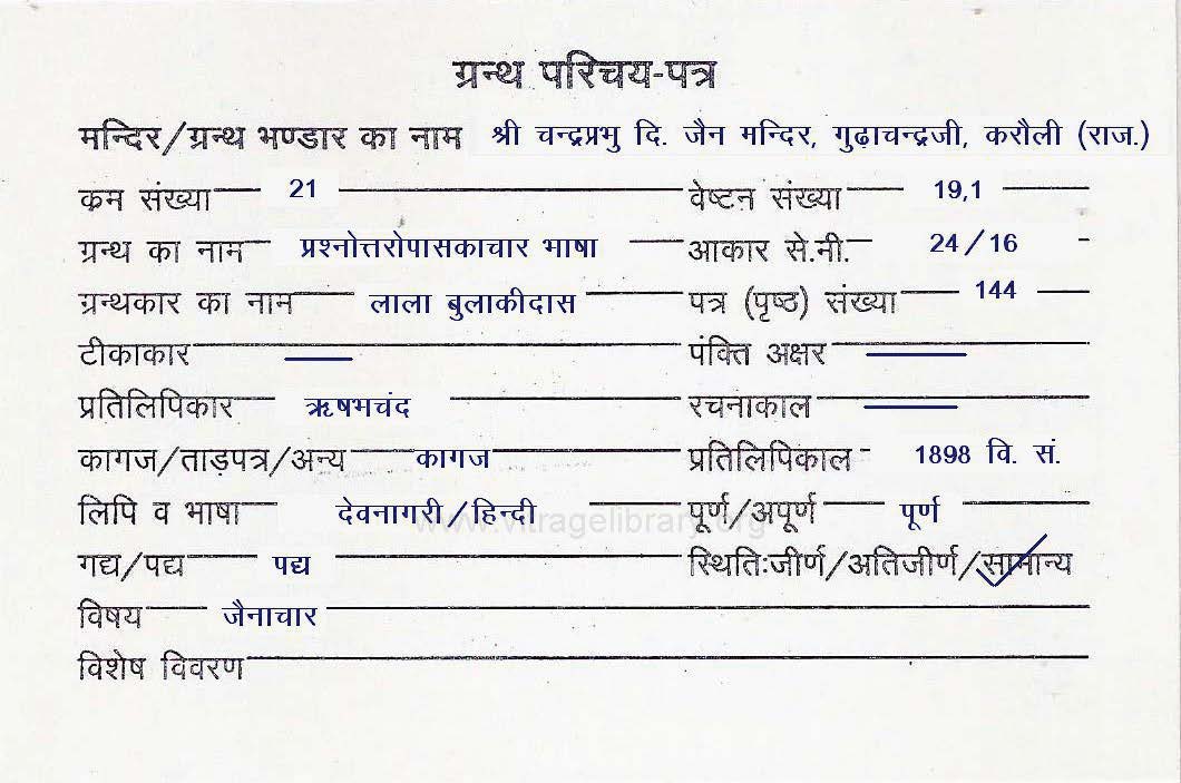 | Granth | : | Prashanottropaskachar Bhasha |
