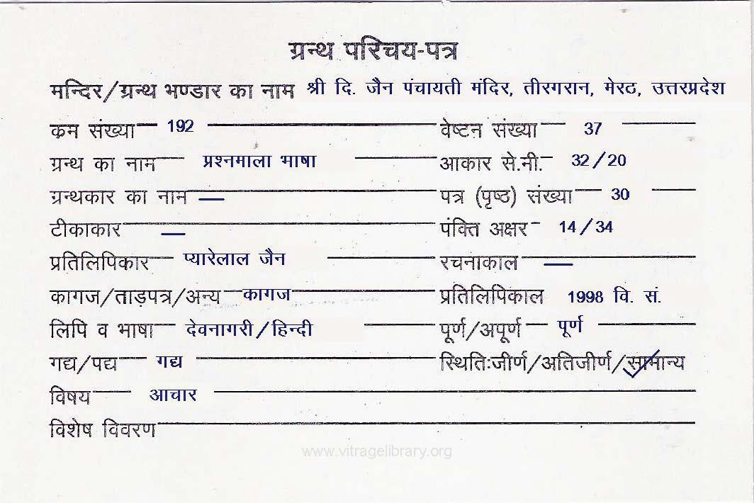 | Granth | : | Prashna Mala Bhasha |