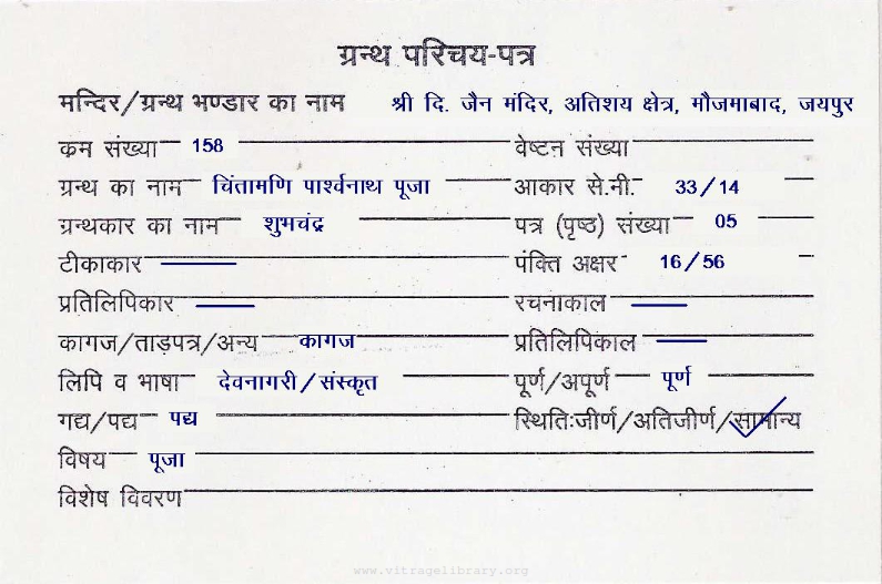 | Manuscripted By | : | Shree Champaram Patni |