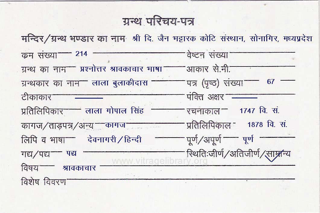 | Granth | : | Prashnottar Shravakachar Bhasha |