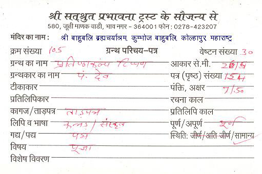 | Granth | : | Pratishtha Kalpa Tippan |