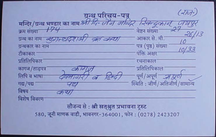 | Source | : | Shree Digambar Jain Mandir, Deewan Bhadichand Ji, Jaipur (Raj.) |