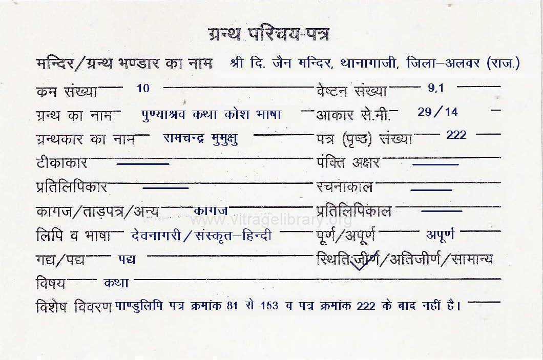 | Granth | : | Punyashrav Katha Kosh Bhasha-1 |
