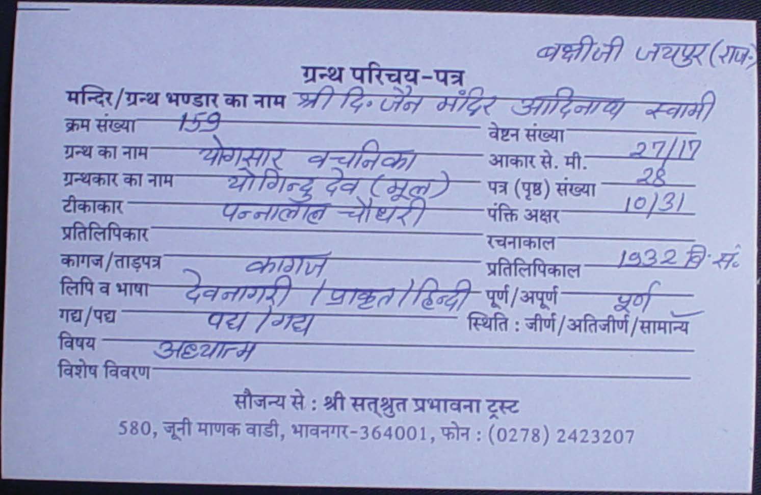 | Sponsored by | : | Shree Satshurt Prabhavna Trust, Bhavnagar |