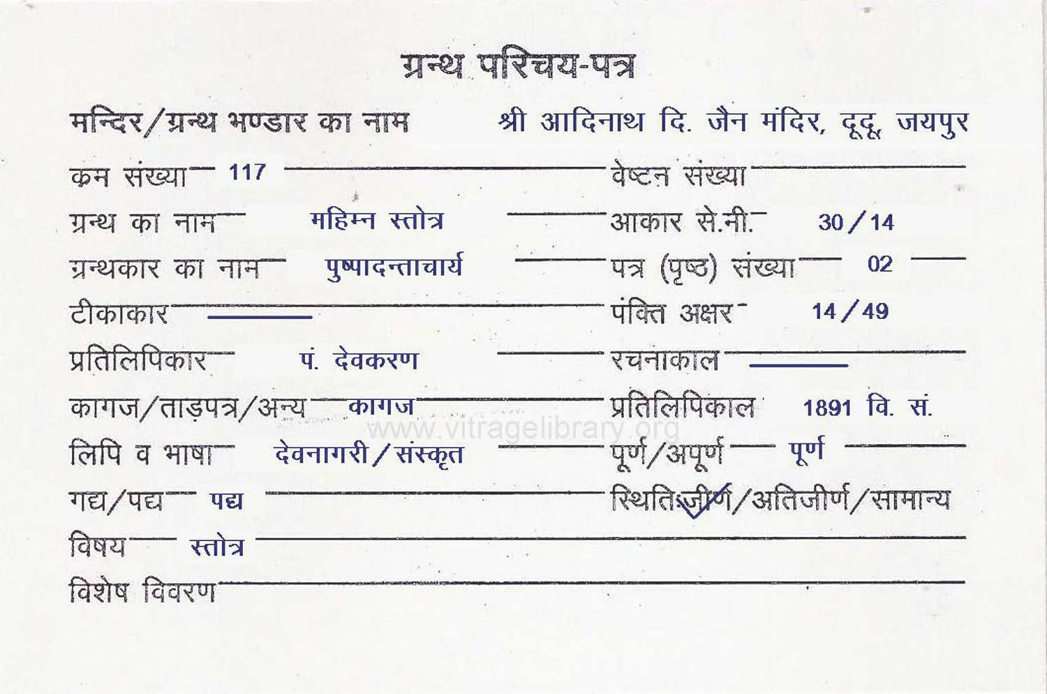 | Granth | : | Rajvansh Varnan |