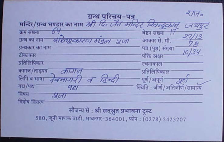 | Source | : | Shree Digambar Jain Terapanthi Bada Mandir, Jaipur (Raj.) |