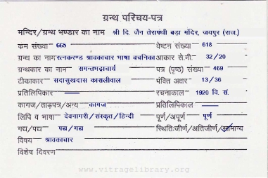 | Tikakar | : | Shree Sadasukhdas Ji Kasliwal |