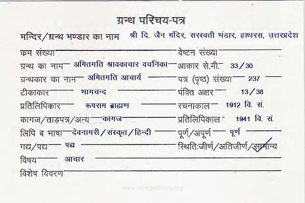 | Granth | : | Ratnakarand Shravakachar Bhasha Vachanika |