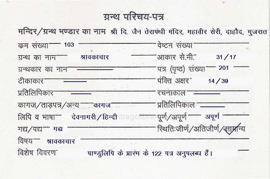 | Granth | : | Ratnakarand Shravkachar Vachanika |