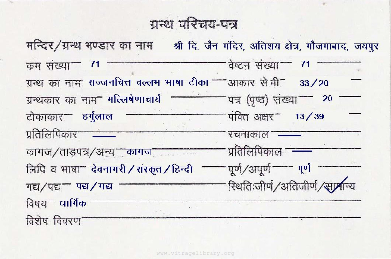 | Granth | : | Sajjanchitta Vallabha Bhasha Teeka |