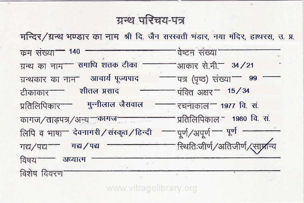 | Granth | : | Samadhi Shatak Teeka |