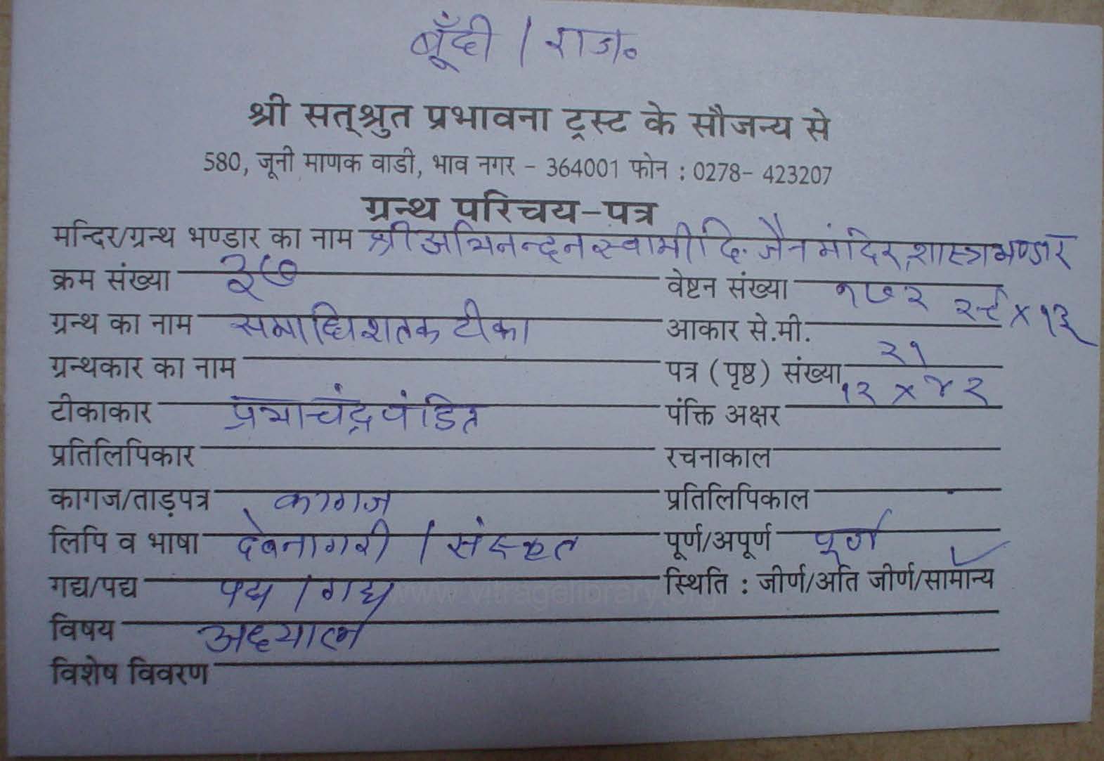 | Granth | : | Samadhi Shatak Tika |