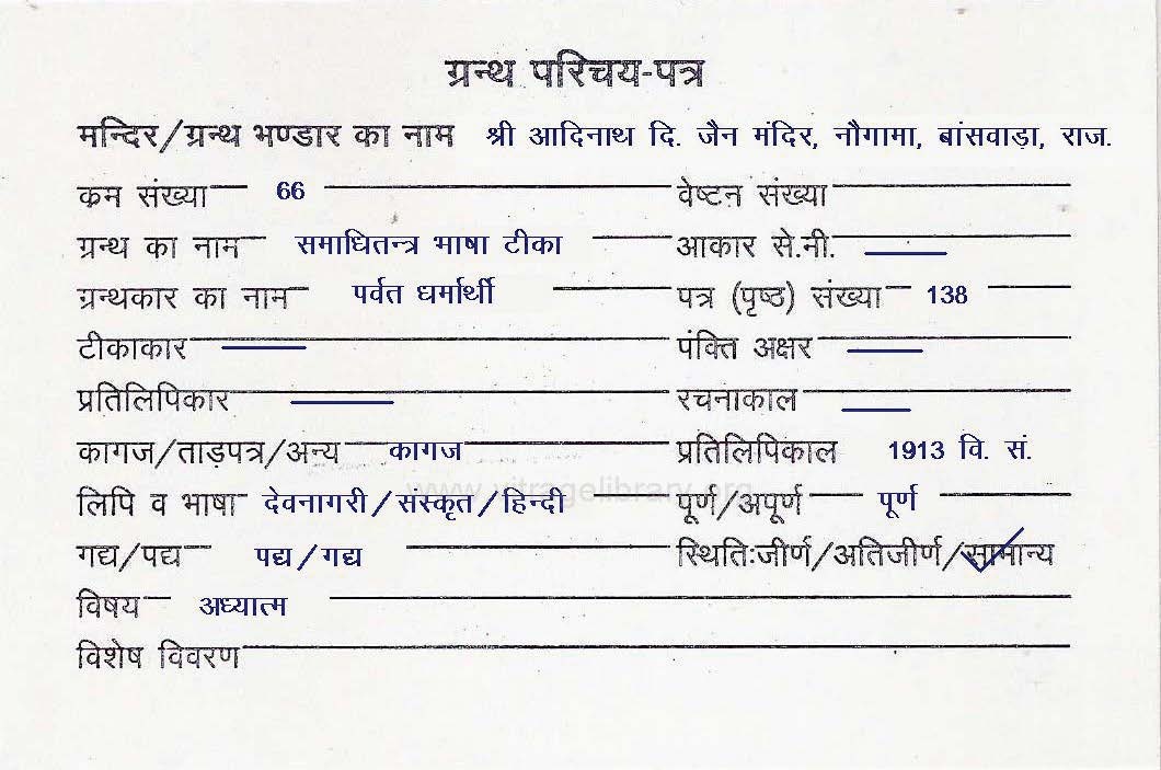 | Granth | : | Samadhi Tantra Bhasha Teeka |