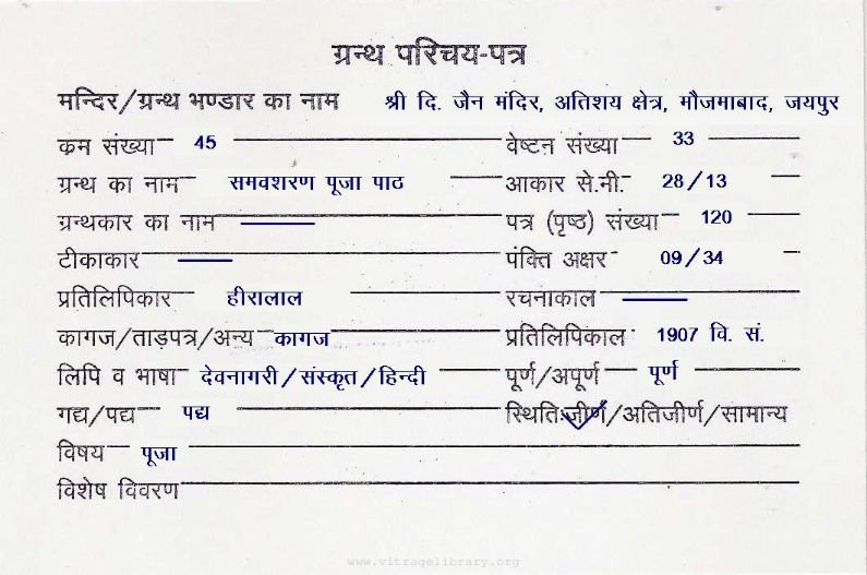 | Manuscript Year | : | 1884 Vikram Samvat |
