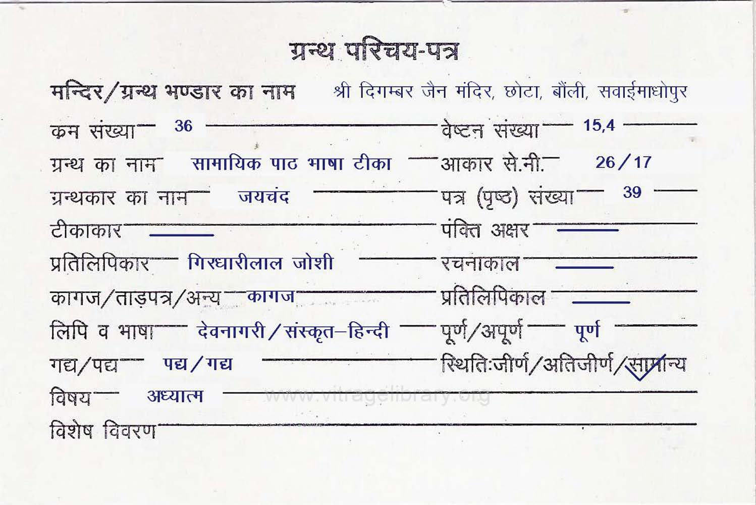 | Granth | : | Samayik Path Bhasha Teeka |
