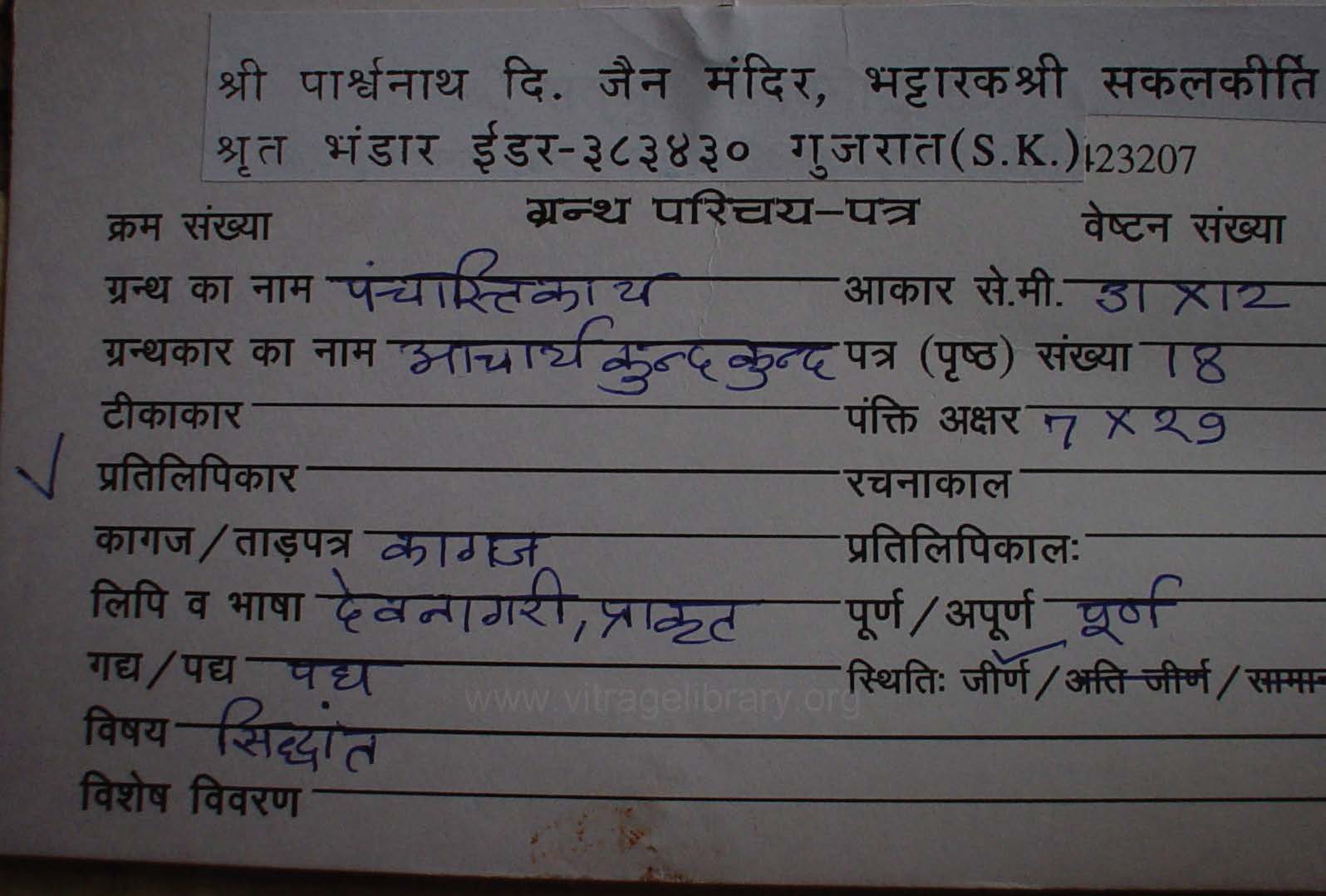 | Manuscripted By | : | Shree Guljarilal Ji |