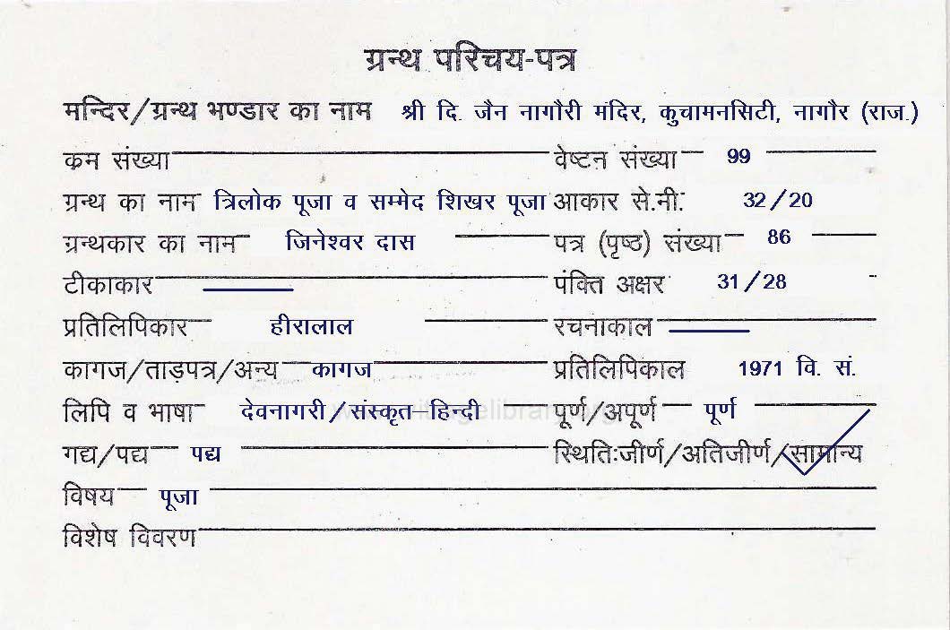 | Source | : | Shree Digambar Jain Panchayti Mandir, Baasangate, Bharatpur (Raj.) |