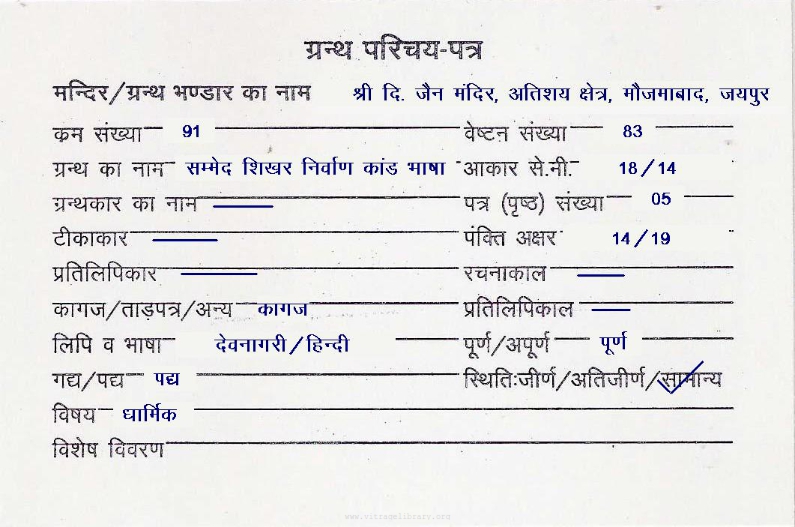 | Granth | : | Sammed Shikhar Mahatmya Bhasha |
