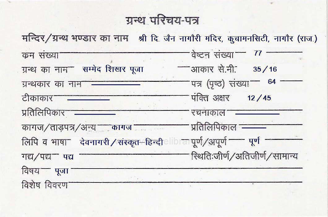 | Granth | : | Sammed Shikhar Pooja |