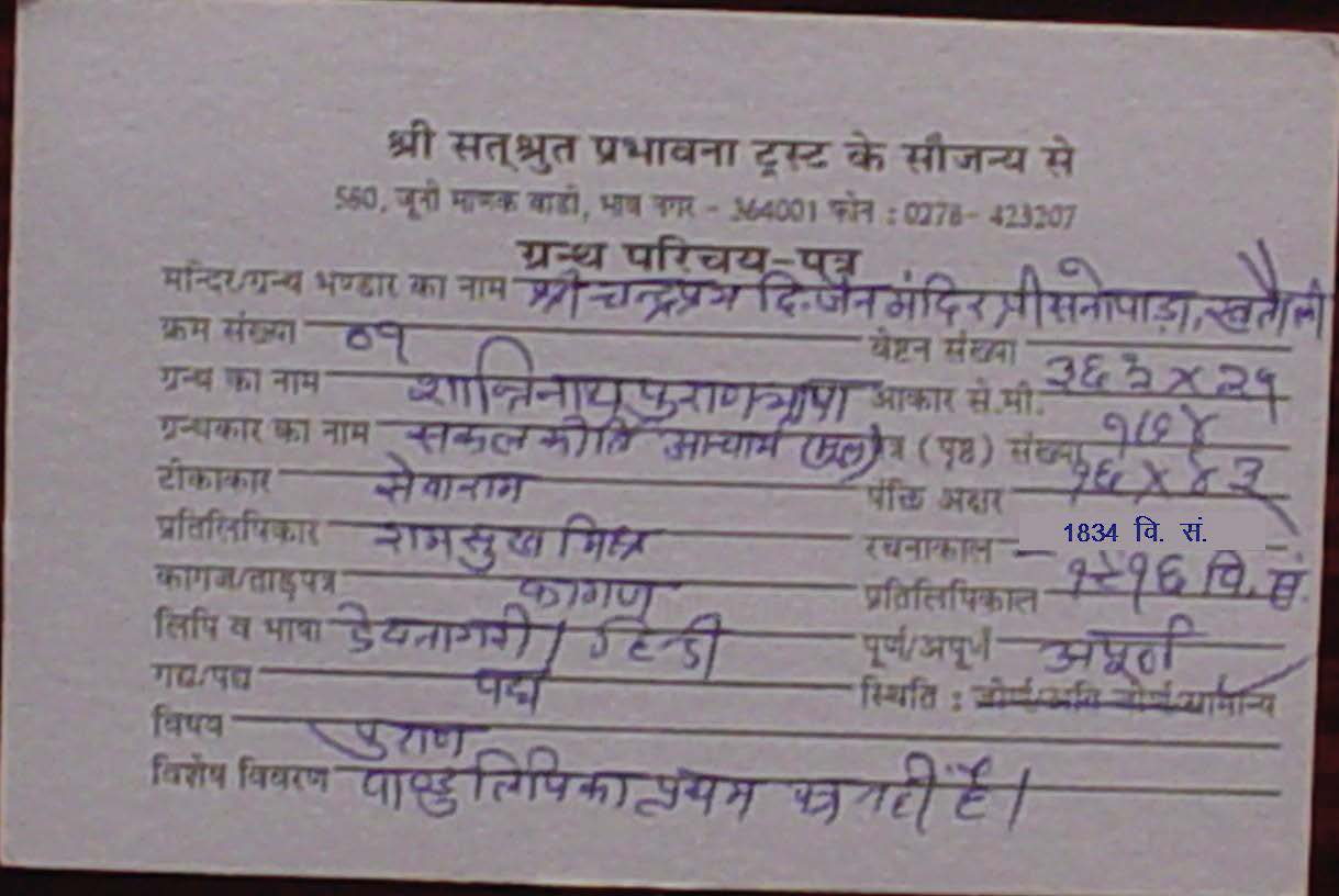 | Granth | : | Shantinath Puran Bhasha |