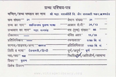 | Granth | : | Shantinath Puran Bhasha |