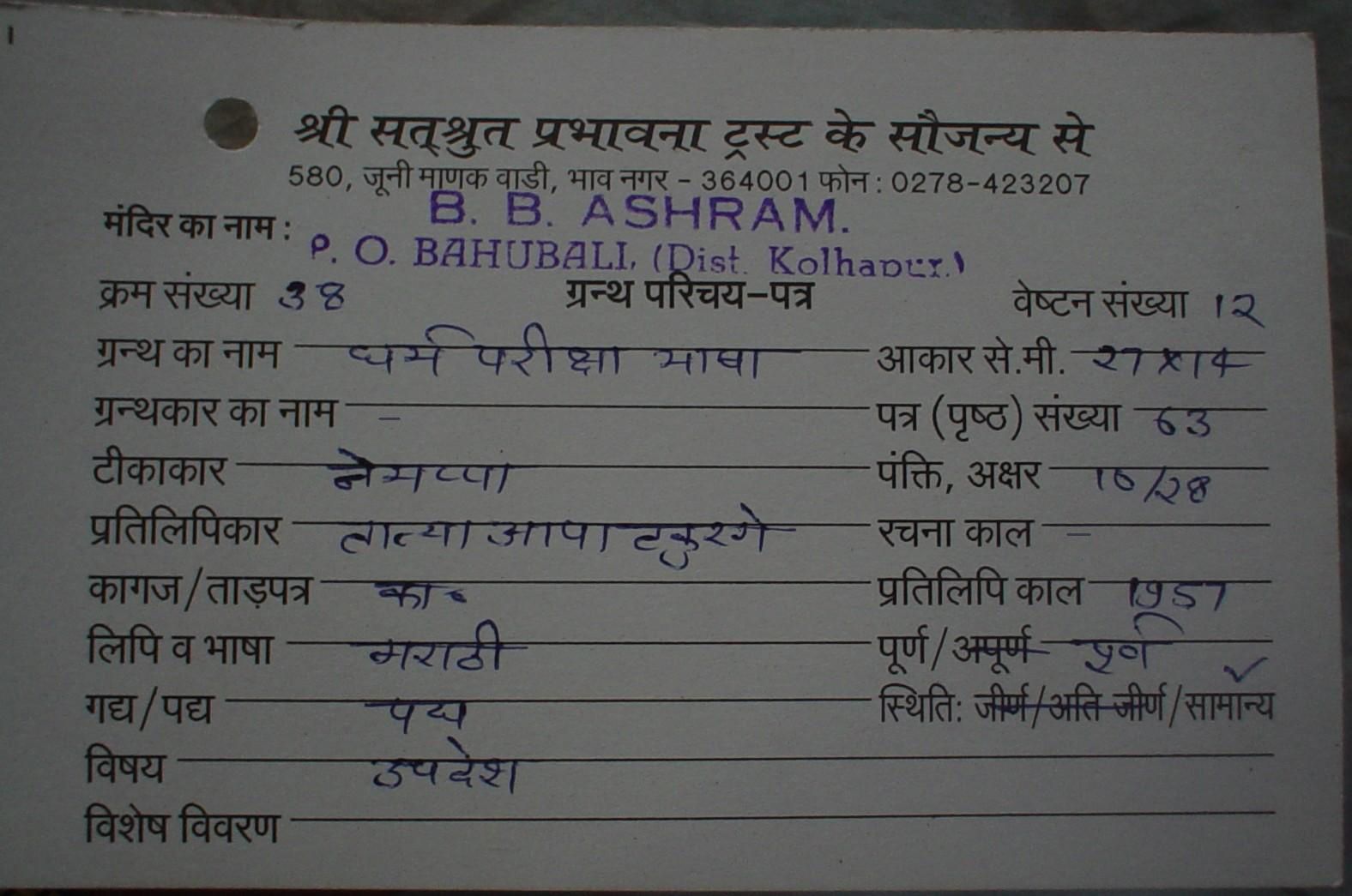 | Tikakar | : | Shree Khushalchand Ji |