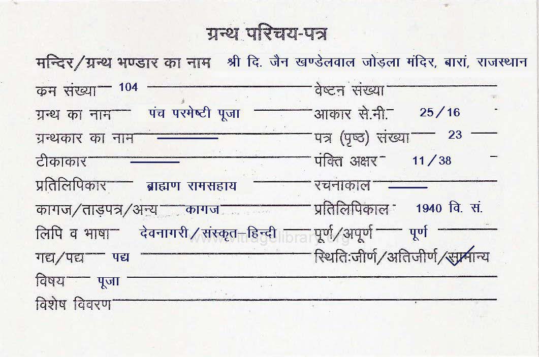 | Granth | : | Shatkarmopdesh Ratnamala Bhasha |