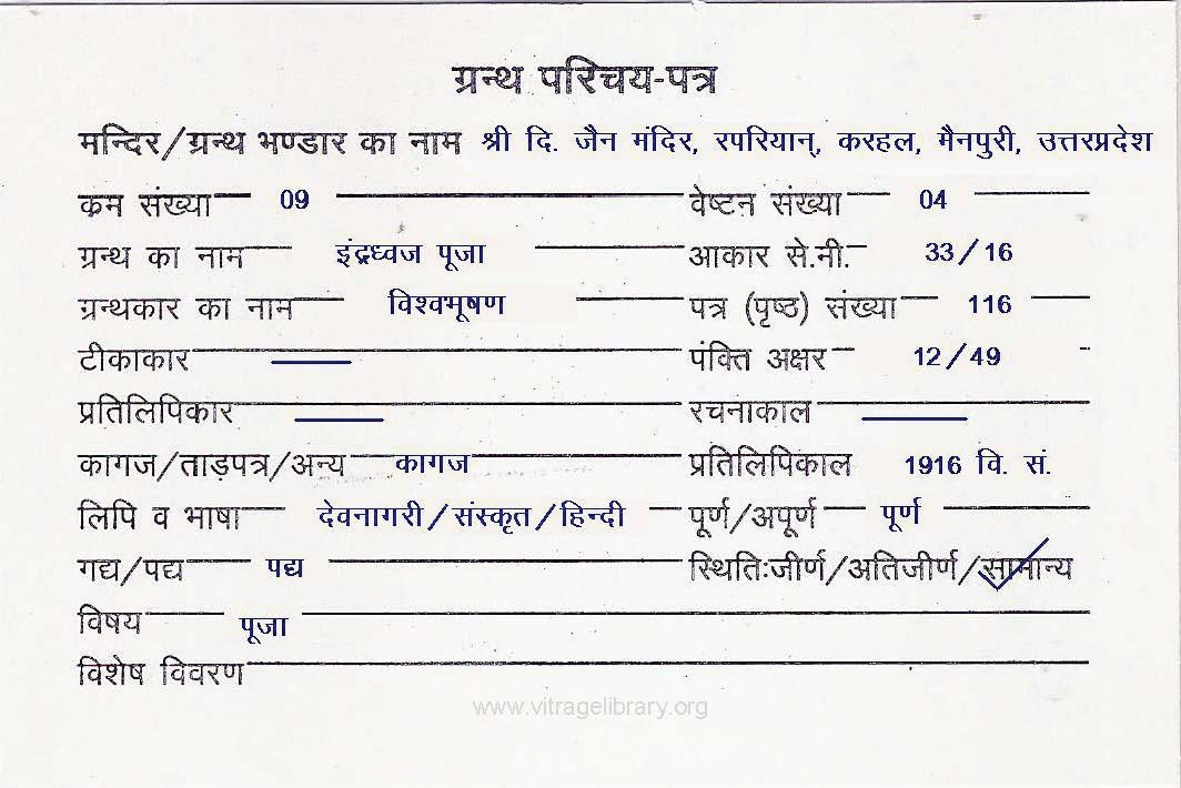 | Granth | : | Shatkarmopdesh Ratnamala Bhasha |