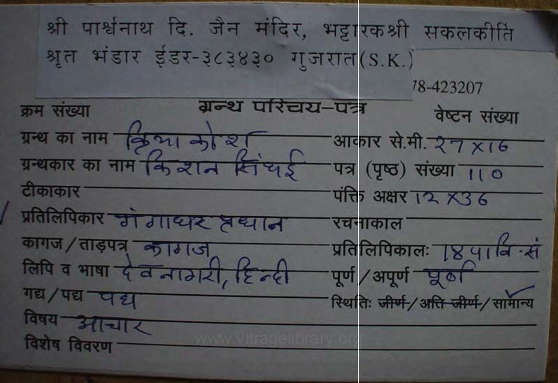 | Manuscripted By | : | Shree Pujari Shivlal |