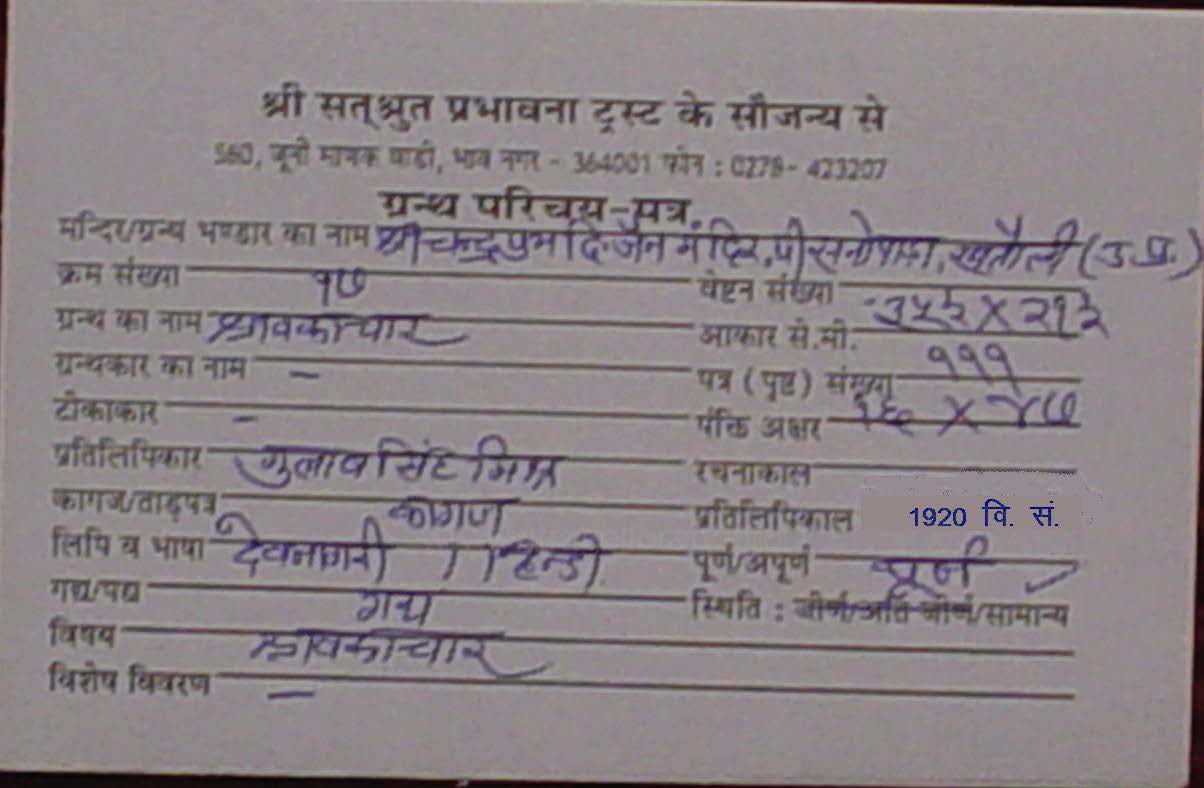 | Manuscripted By | : | Shree Gulabsingh Ji Mishra |